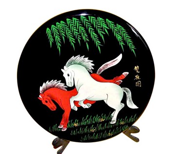 平遥推光漆器(双骏马)28cm(工艺品)